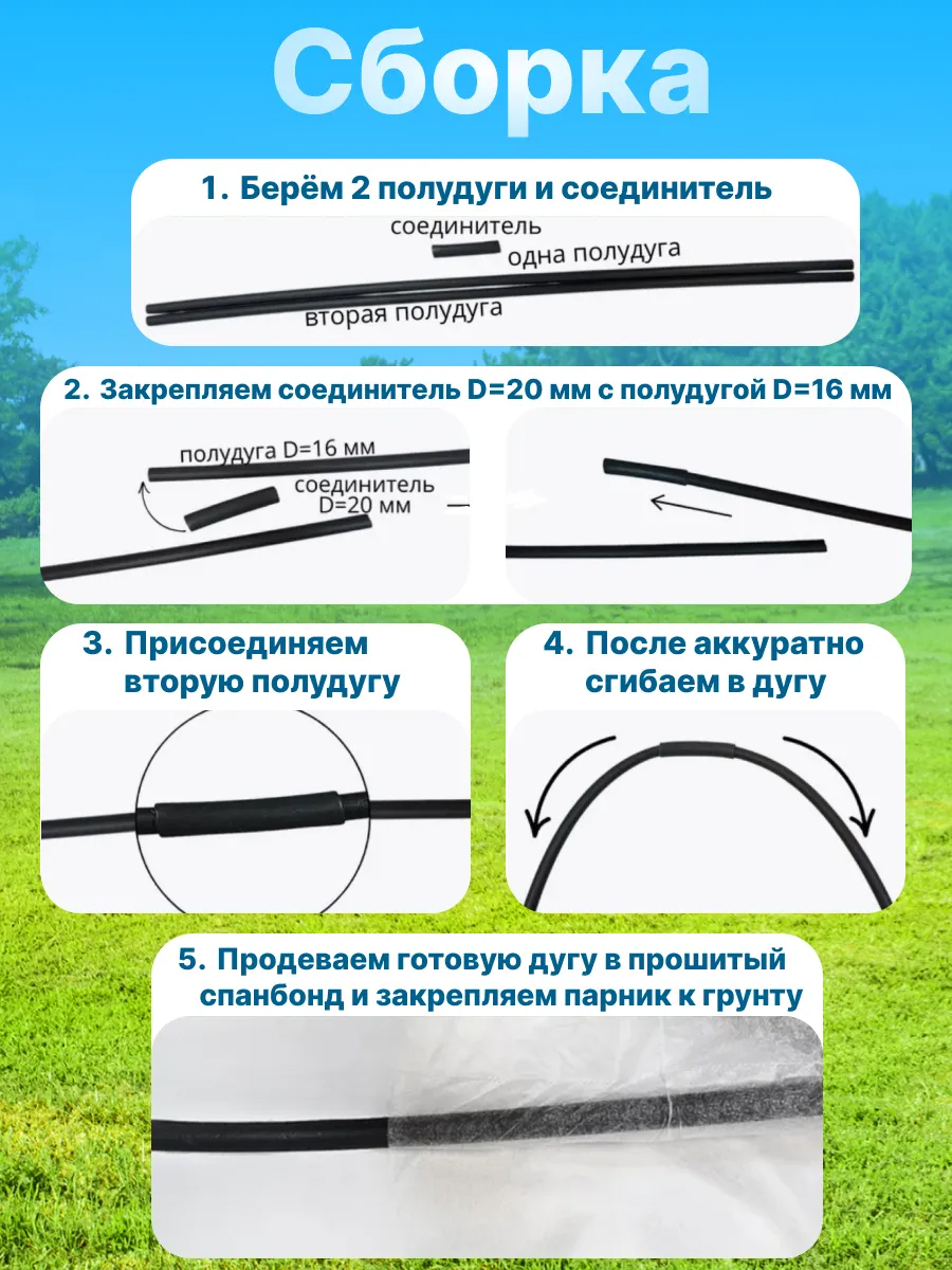 Кроме того, парник садовый с дугами изготовлен из качественных материалов, что гарантирует долговечность и надежность. Он легко очищается и не требует сложного ухода, что делает его отличным выбором для любого садовода, независимо от уровня опыта. Если вы хотите получить отличный урожай и защитить свои растения, парник для рассады станет вашим незаменимым помощником.